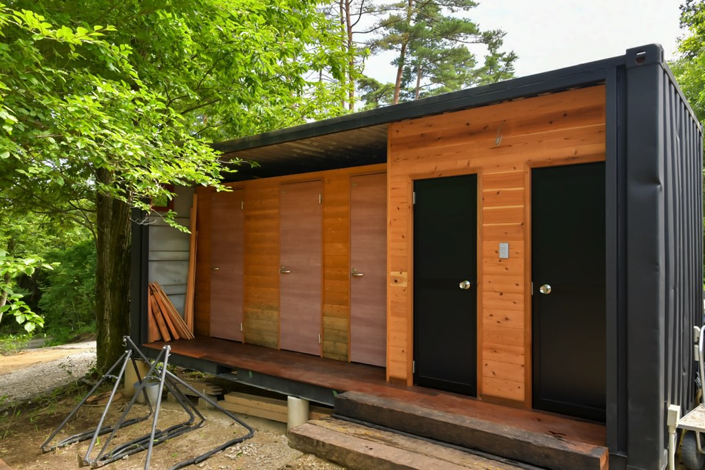 北杜市白州町に2022年4月にオープンした「白州・星かげの森 Camp Town」 。