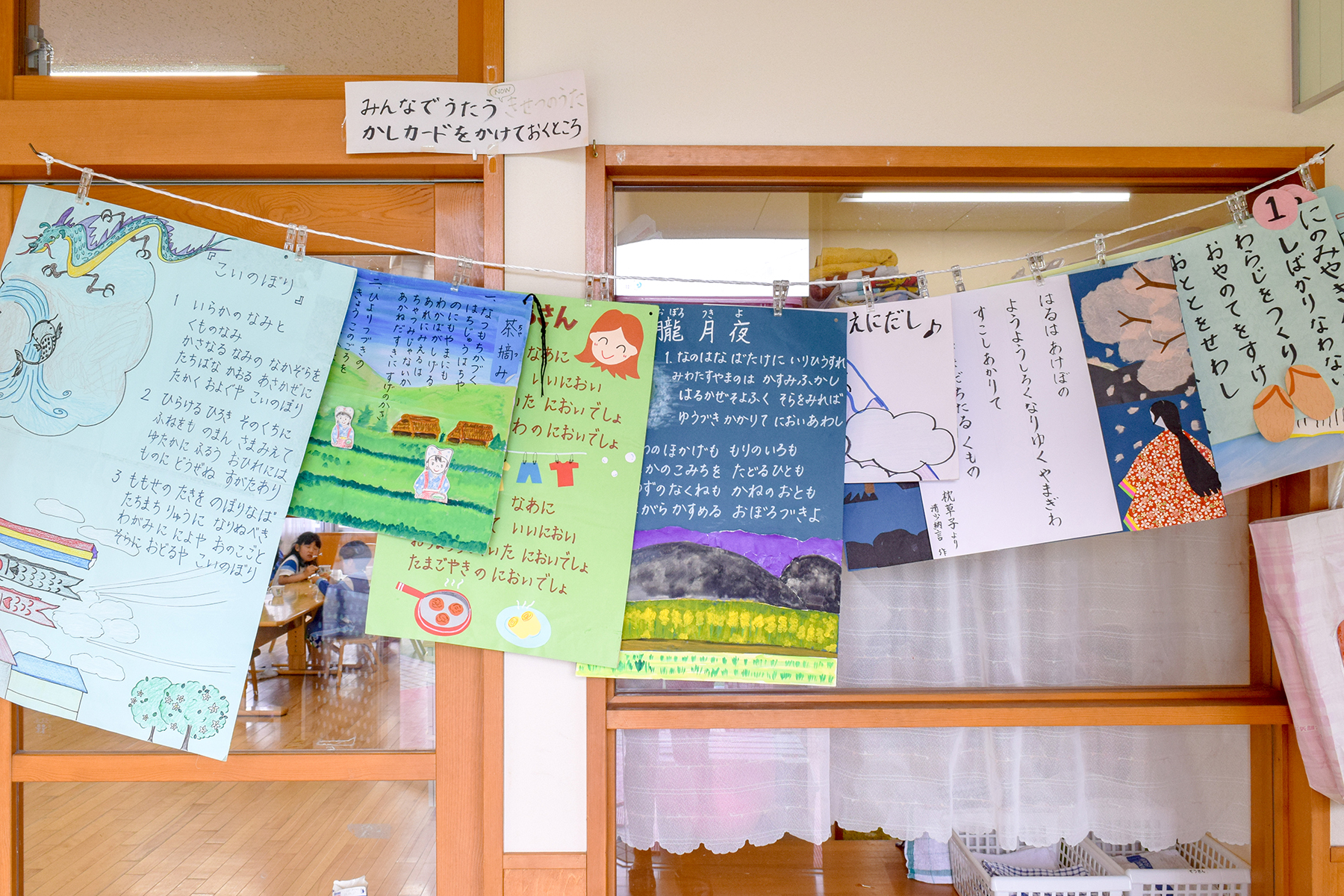 取材したのは4月中旬、自分の手をかたどった桜の木が園内に貼られていました。工作やお絵かきで季節の行事を学べる良い取り組みだと思いました。