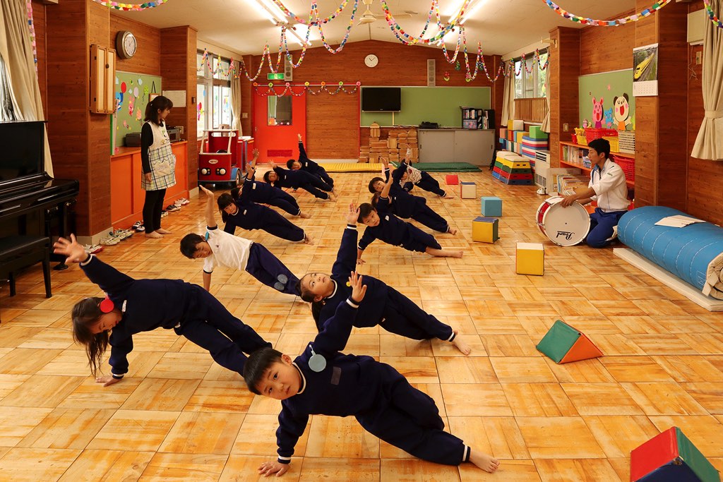 年少から月2回ペースで行われているジャクパ体操教室。男の子も女の子も体を動かす楽しさを感じつつ、強いからだづくりを目指します。「できた!」という達成感は子どもたちの大きな自信につながるそうですよ。