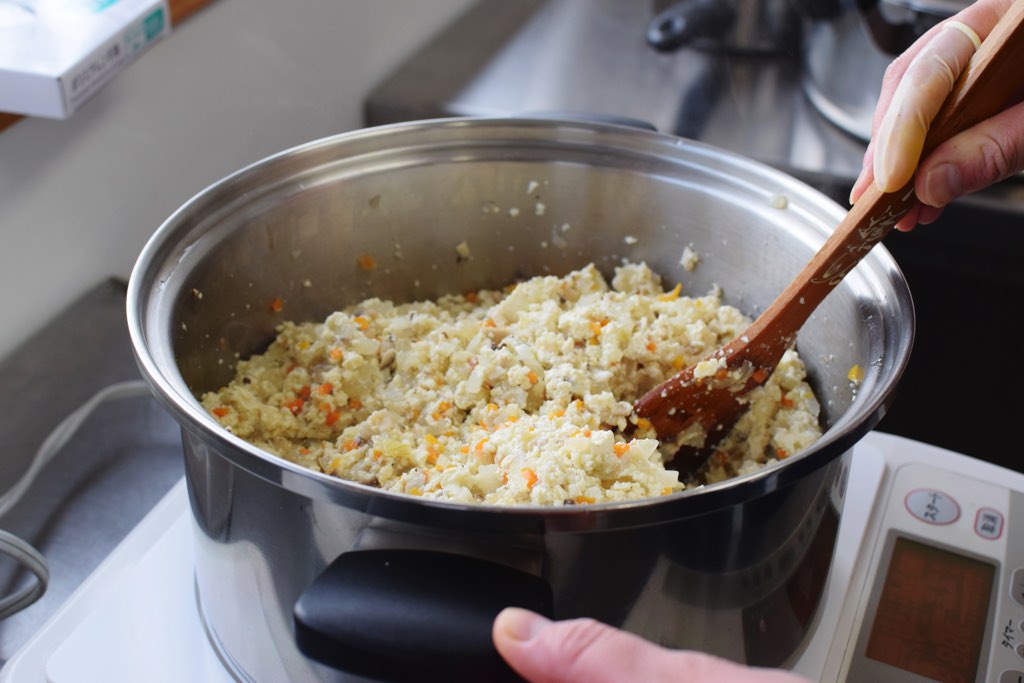 今日の給食は玄米ごはん、炒り豆腐、ポテトきんぴら、納豆サラダ、スープです。「まごわやさしい」で栄養バランスもバッチリ♪給食の先生が愛情をこめて丁寧に作っていました。とってもおいしそうですね!