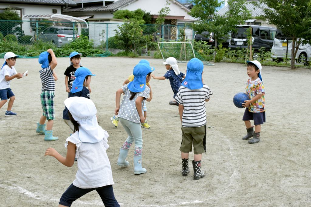 年長の子どもたちはドッジボールをしていまいた。この年齢になると投げるボールの速さも素早く、逃げるのも必死です。運良く自分の前に転がってきたボールはしっかりと拾い、素早く投げる…迫力満点の試合でした。