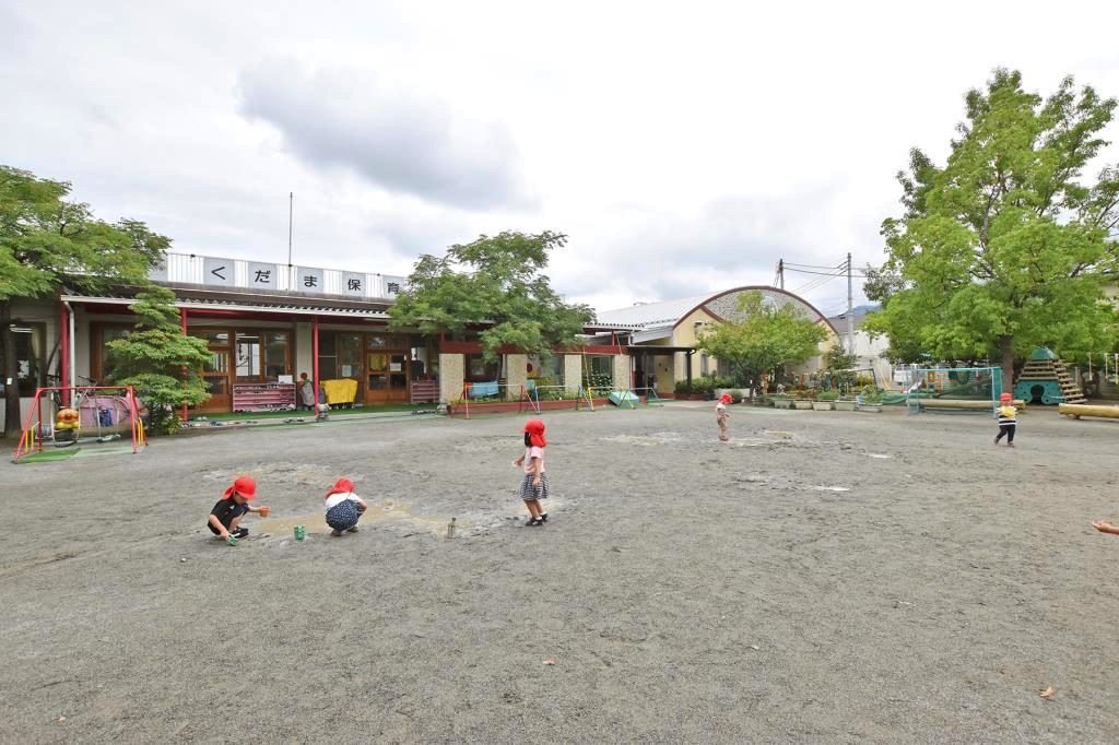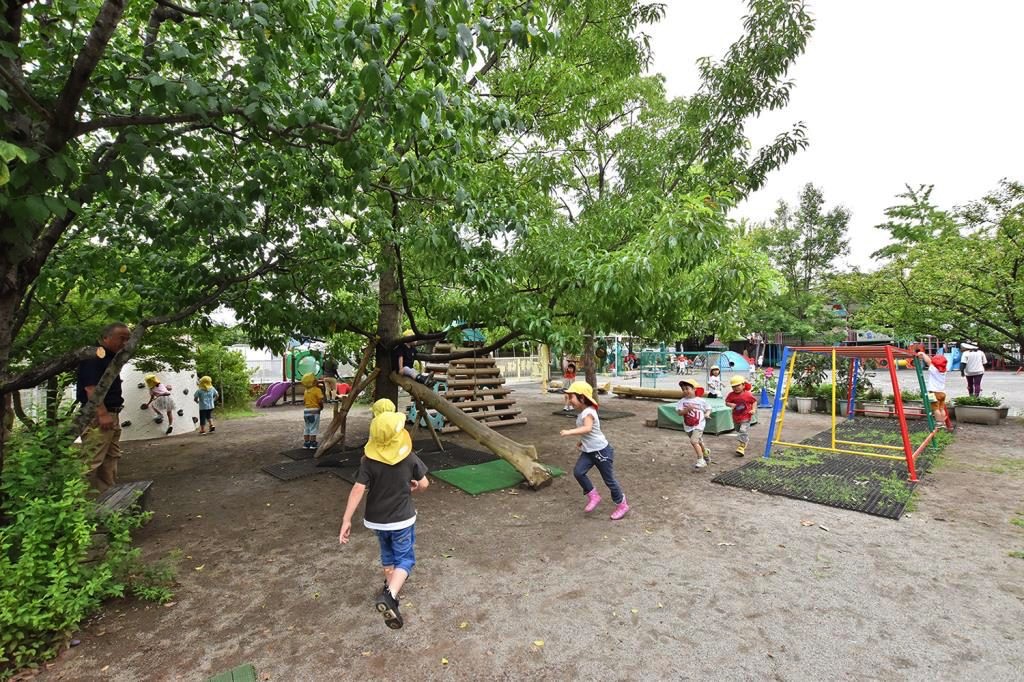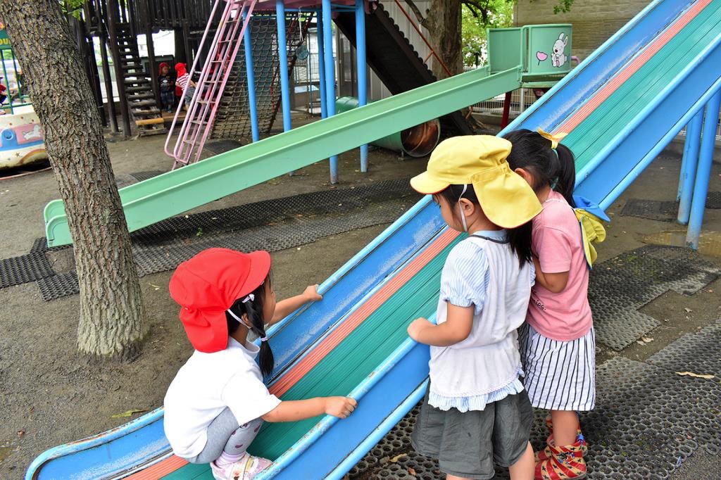 「滑り台、危ないから反対から登っちゃダメだよ」そんな声が聞こえ振り返ってみると、年中さんが年少さんに優しく教える姿が!縦割り保育を取り入れているくだま保育園では、子ども同士が自然と教えあえるのだろうと思いました。
