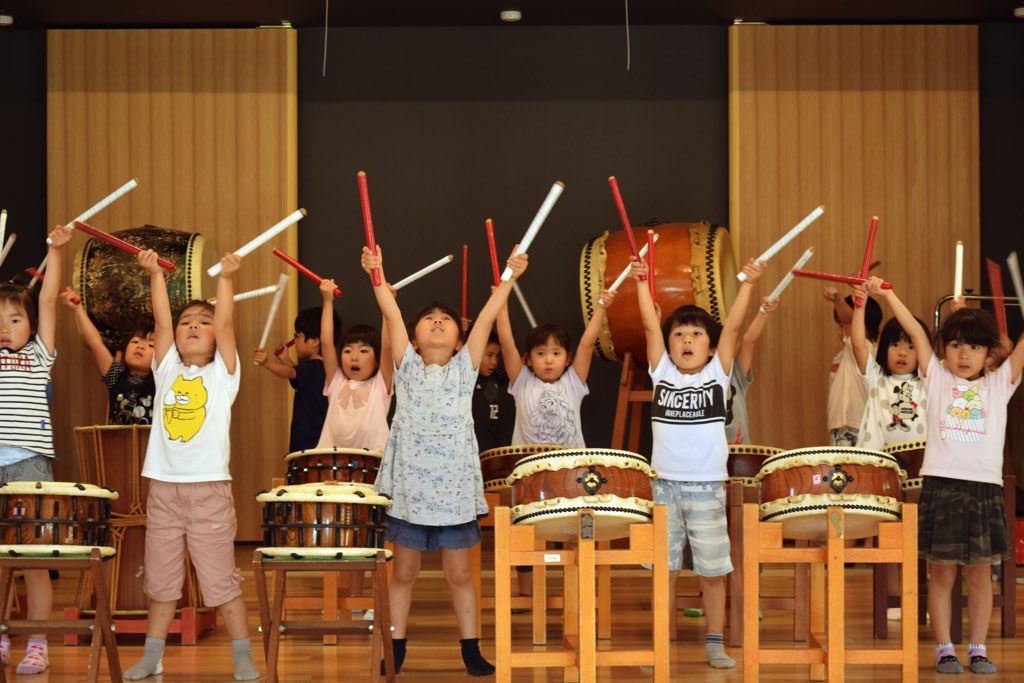7月の納涼会に向け、年長さんは和太鼓の練習。YMCAの曲に合わせリズム良く和太鼓を叩いていました。ほとんどの園児達は一週間ほどで覚えてしまったとのこと!取材に伺ったのは5月末!あと一ヶ月でだいぶブラッシュアップできますね♪