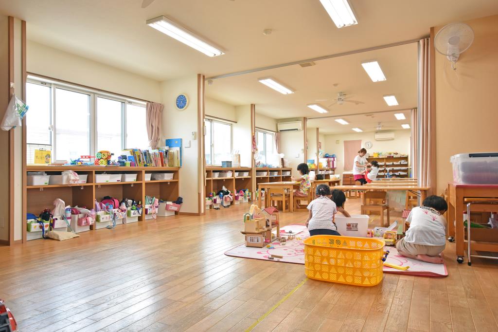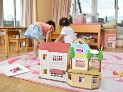 異年齢保育で、1つのお部屋で色んな年次の子ども達が一緒に遊んでいました。小さい子ども達は上のお兄さんお姉さんに憧れを持ち、学年が上の子ども達は小さなお友達の面倒を見たりして優しさが育ちます。
