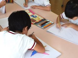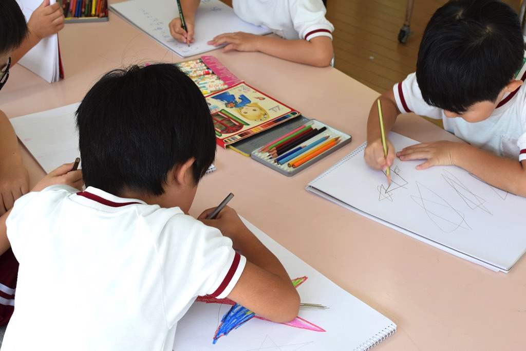 年長の子どもたちはお絵かきの時間。色とりどりの色鉛筆を使って『☆』を描いていました。形や色づかいでそれぞれ個性が出ていますね。みんな鉛筆の持ち方もきちんとできていましたよ。