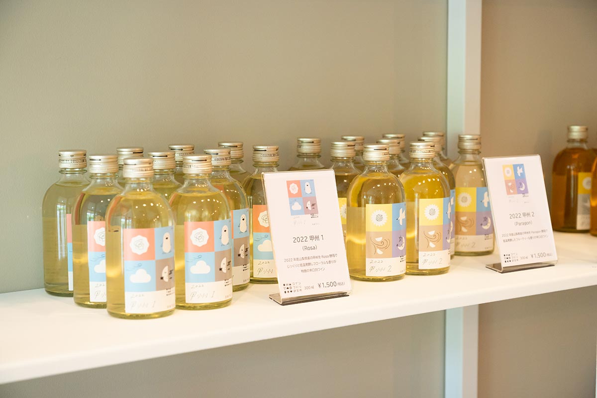 ショップ内で販売しているワインは、ワイナリー向けに販売している酵母や機械を使い、実証実験的に作られた異色のラインナップ。