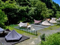 | メニュー | ・テントで宿泊『グランピングテントエリア』 ・木のぬくもりを感じるゲストルームをそなえた『本館』 ・謎解きに挑戦、『フォレストミステリーアドベンチャー』 ・川へ直行できる『川遊びエリア』 ・日帰りで楽しむ『BBQ&カフェ』 |