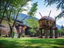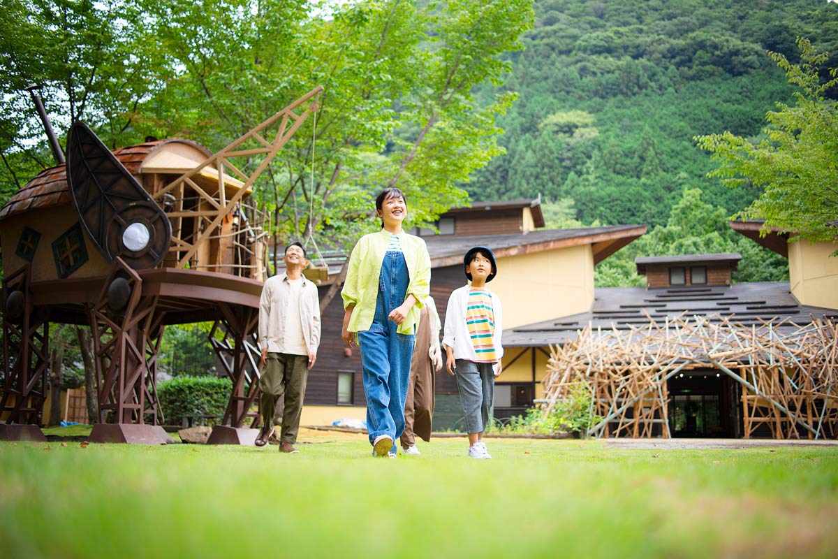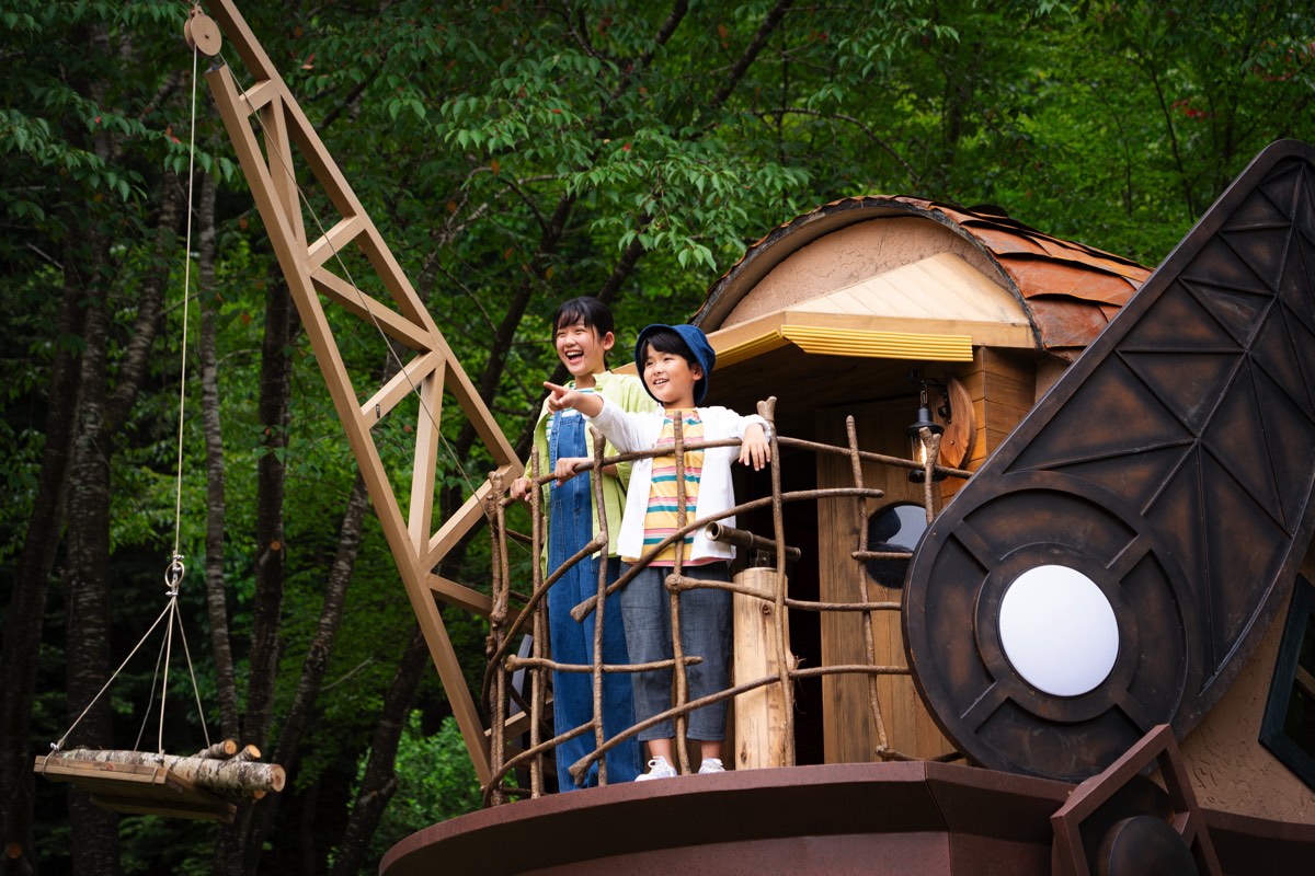 かつて「ミューの森の民」が暮らした村が舞台の、まるで絵本に迷い込んだようなグランピングが体験できる。