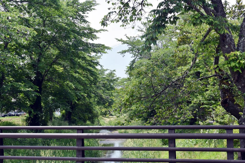 川沿いには桜が約400m並び、春には富士山を背景にした桜の撮影スポットとして大人気!