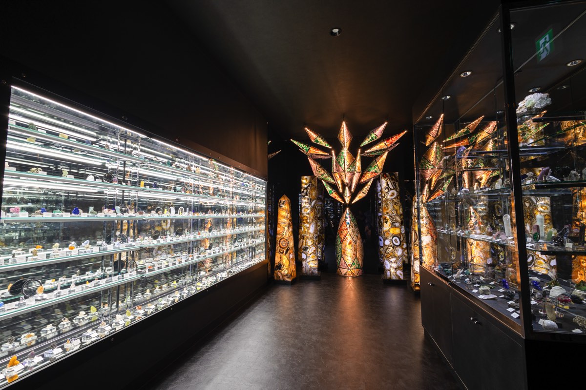 美しい宝石や鉱石が展示されているミュージアムやショップもあり。