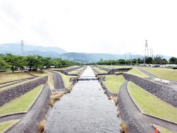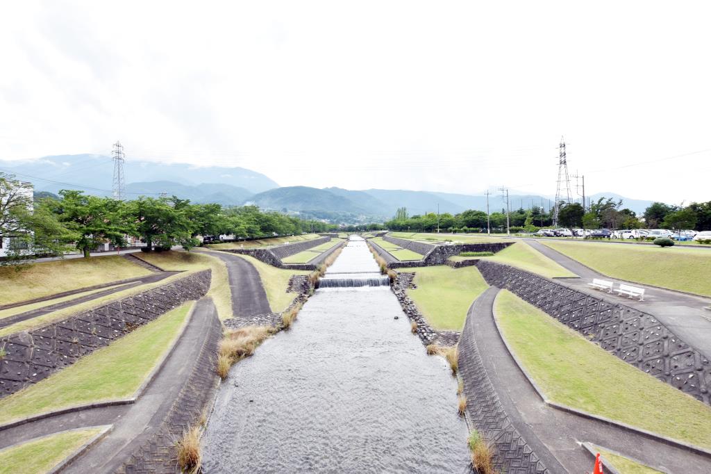 富士山や周辺の山々の四季折々の姿を眺められ、5月頃には両川岸約1Kmに渡りアヤメが鮮やかに咲く。