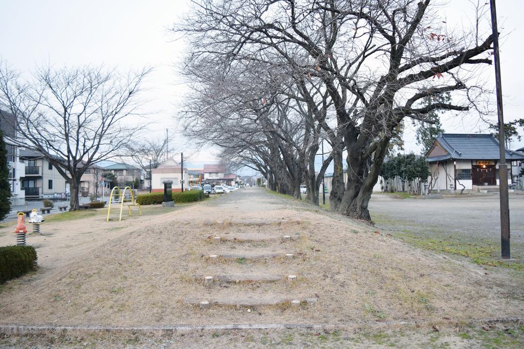 武田信玄公が行った治水事業のひとつ『かすみ堤』の一部が残る公園。