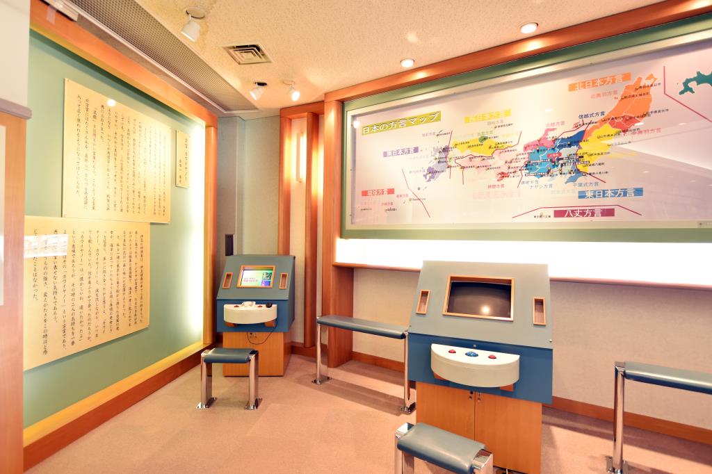 金田一博士の書斎をイメージしたことばの資料館を併設しており、全国の方言など、ことばの面白さに触れることができる。