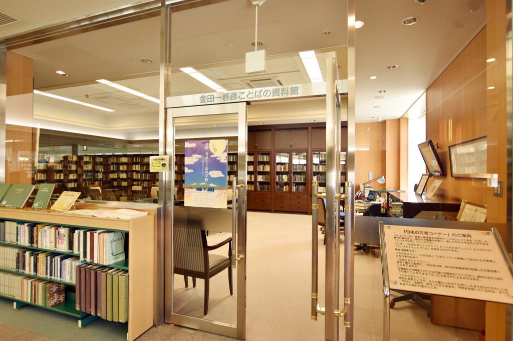 言語学者・金田一春彦より寄贈された“ことばの資料”が約28000点収蔵されている図書館。