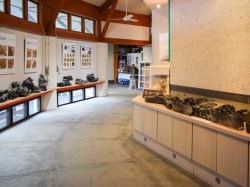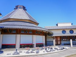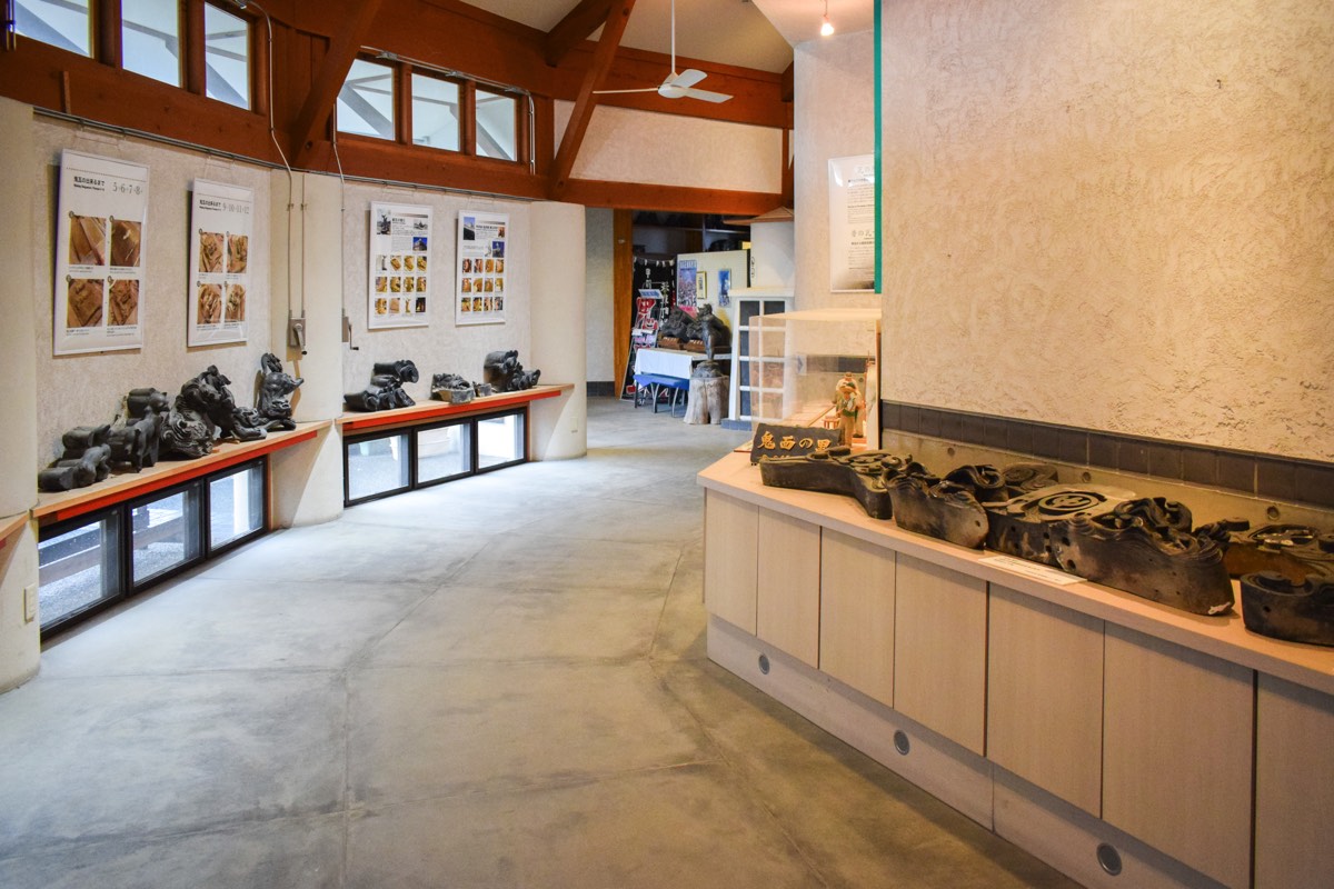 入口前や展示ホールには様々形の瓦が立ち並び、その作りや工程を知れるのが面白い。