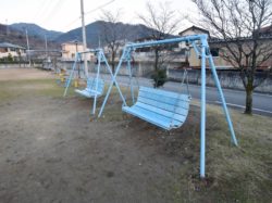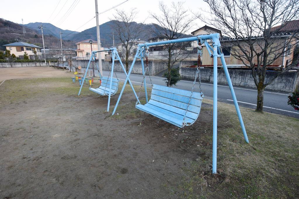 閑静な住宅街の中にある公園でベンチ形のブランコが特徴的。