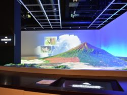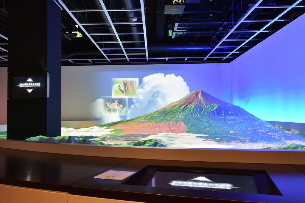 展示室の奥には富士の立体模型があり、富士を一望できるのも魅力。