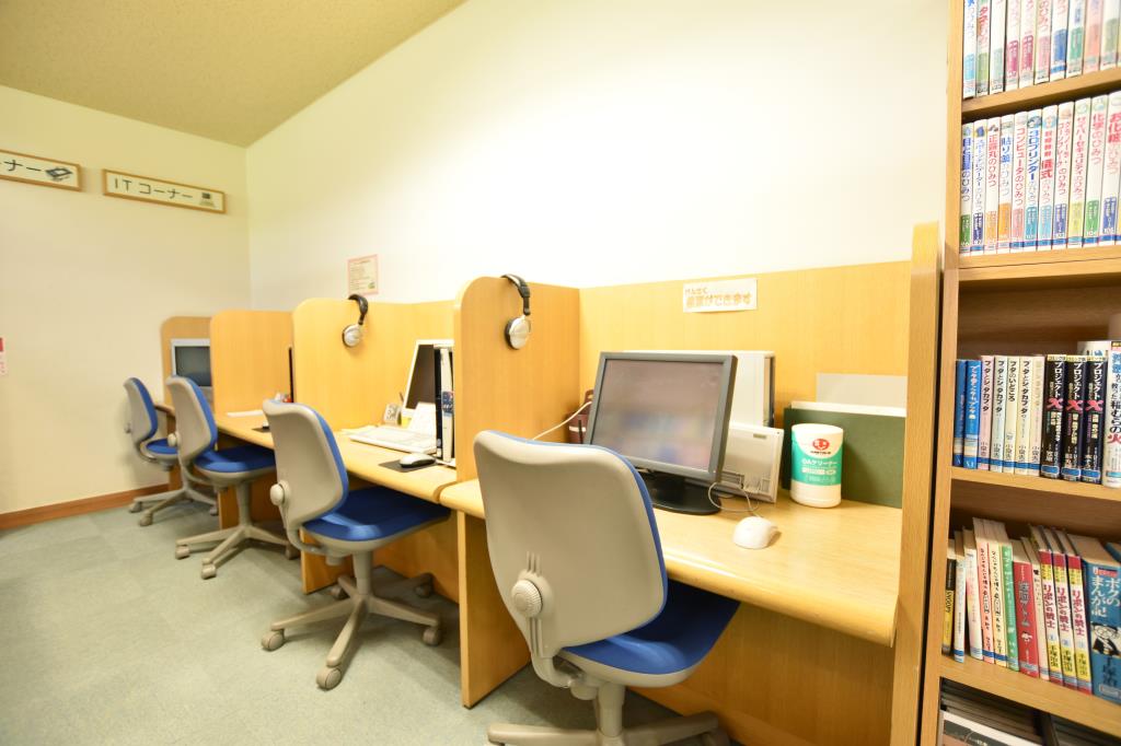 | 設備 | ●一般書架 ●学習スペース ●絵本コーナー ●水に関する資料のコーナー ●ITコーナー ●プレイルーム ●インターネット利用者開放端末 ●持込みパソコン席 ●授乳スペース(プレイルーム内) ●おむつ交換台(多機能トイレ内) ※ベビーカー貸出し有 |
