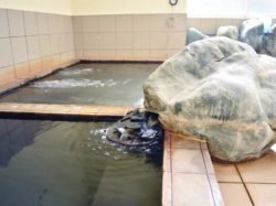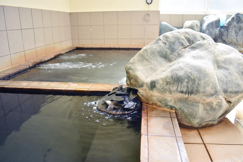 地下300メートルから湧き出るお湯は、肌がつるつるになると好評!また、町内産出の天然石・ブラックシリカを使用しており、身体の芯から温まることができる。