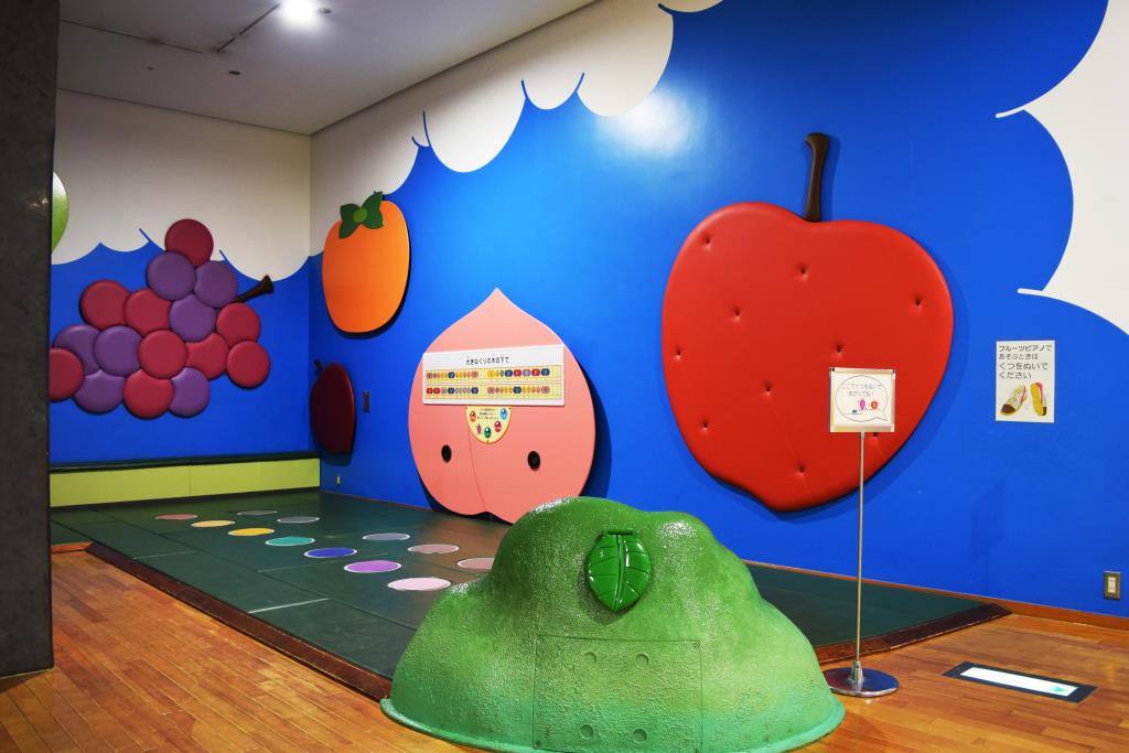 山梨市郊外の高台にあり、「花とフルーツとワイン」がテーマ。果物について知ることができるくだもの館や子どもに人気の遊具があり、満喫できる。