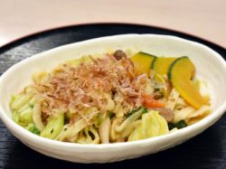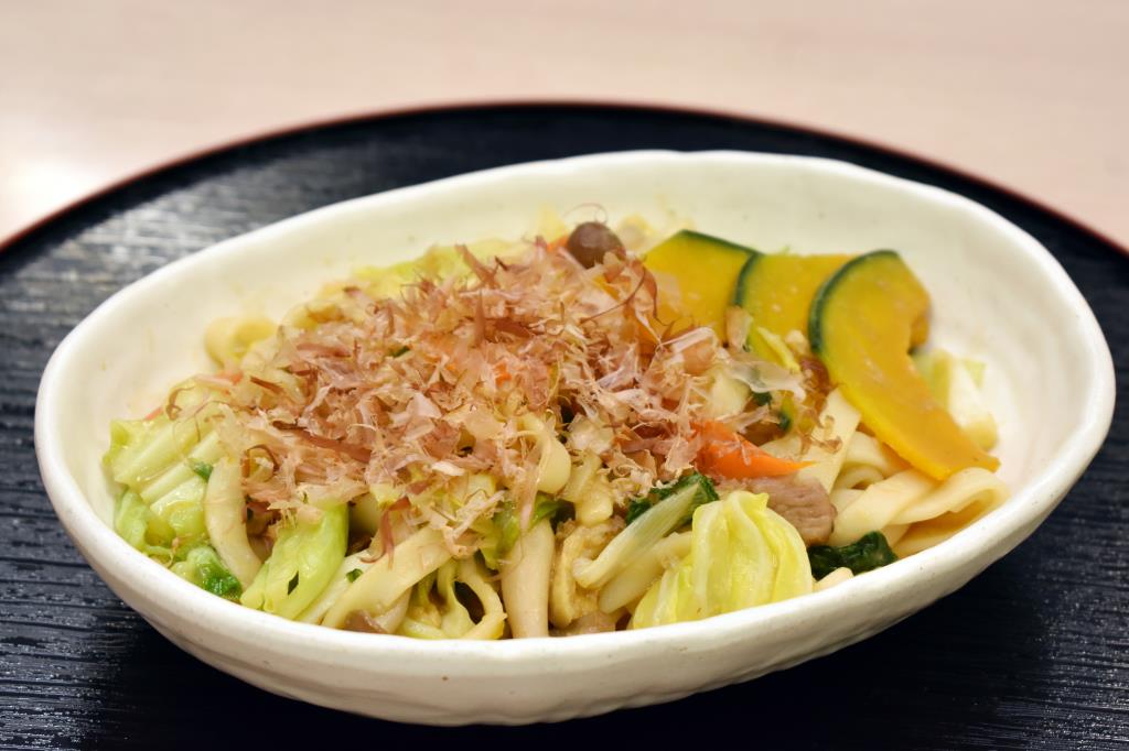 軽食コーナーには名物「焼きほうとう」も!かつおの香りが口の中に広がるおいしさをご賞味あれ♪