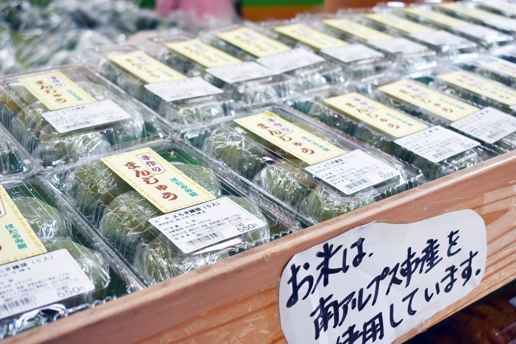 南アルプス市産の旬の野菜やフルーツ(もも、さくらんぼ、キウイ、ぶどう等)、ほたるみ館で製造されたお惣菜、お菓子、味噌、小梅漬け、ジャム、フルーツドレッシング等を販売している。