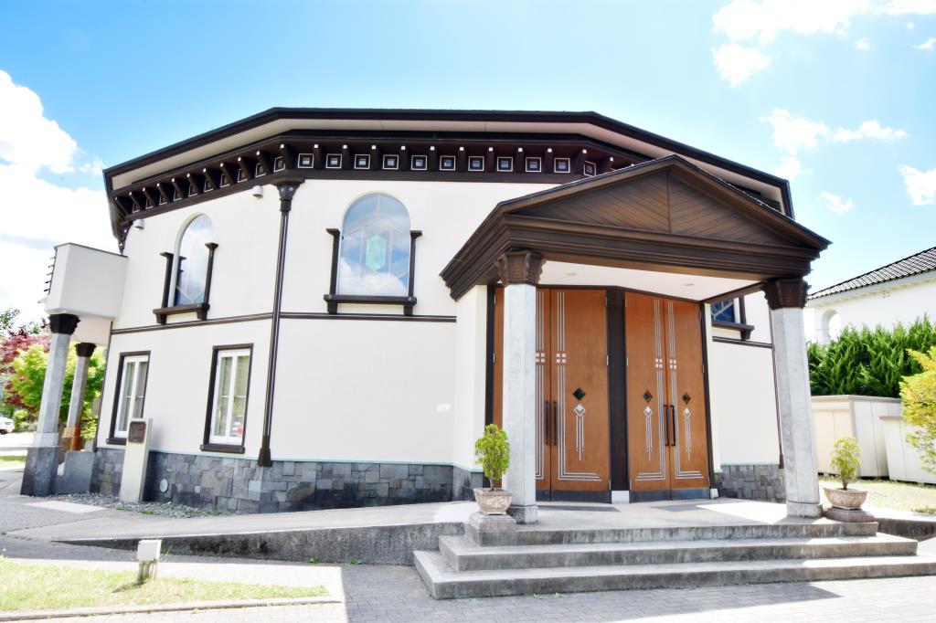 河口湖の北岸に佇む「河口湖円形ホール」。