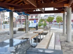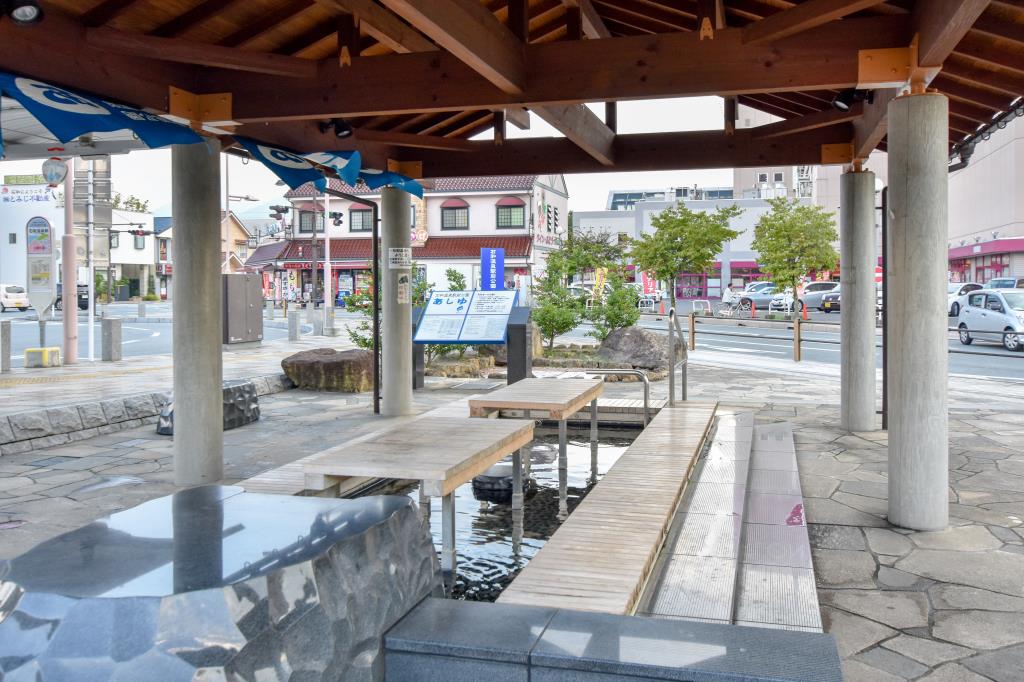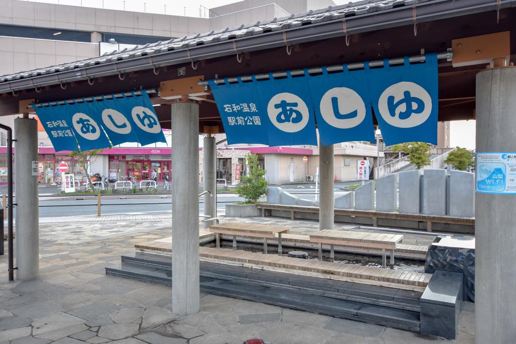 石和温泉駅南口を出てすぐの場所にある足湯施設。