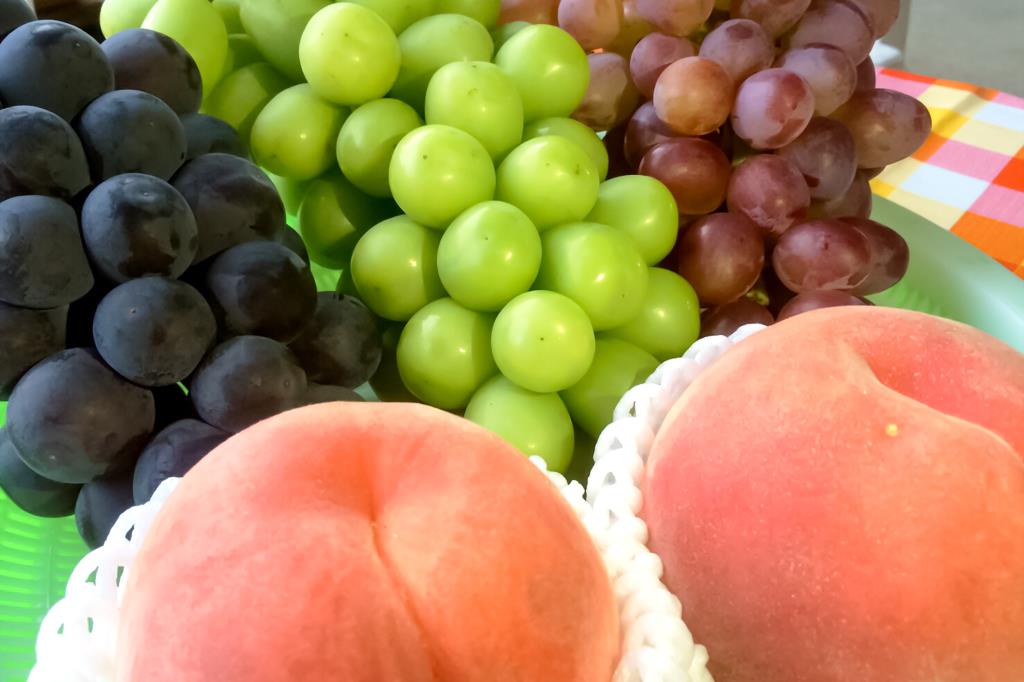 7月から桃狩り、8月中旬からはぶどう狩り、旬の美味しさを時間無制限で、持参の弁当を持ち込んで一日中楽しむ事ができる。