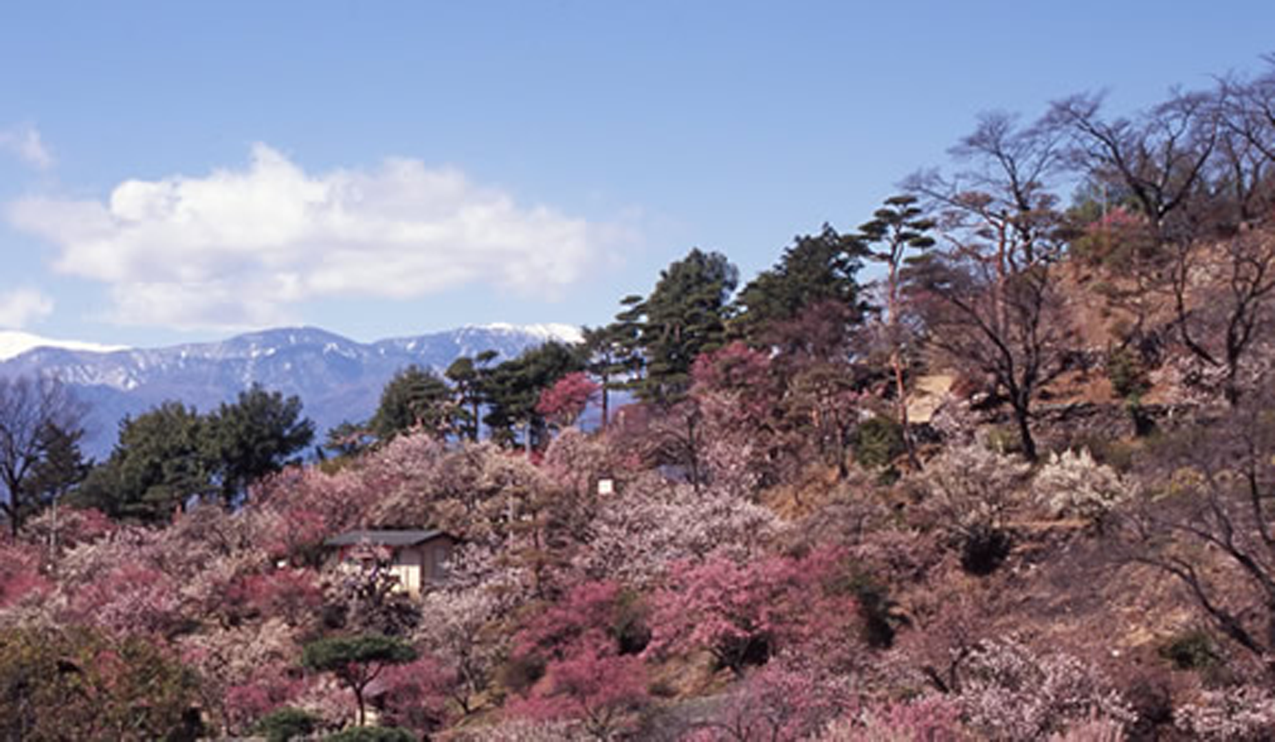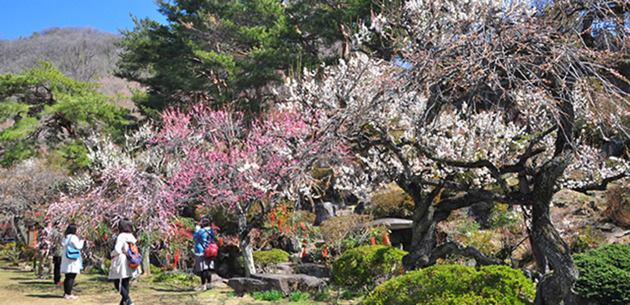 30数種類、約2,000本の観賞用の花梅木や、桜、もみじ、牡丹等が栽培されており、見頃は2~3月。秋は紅葉が観賞できる。
