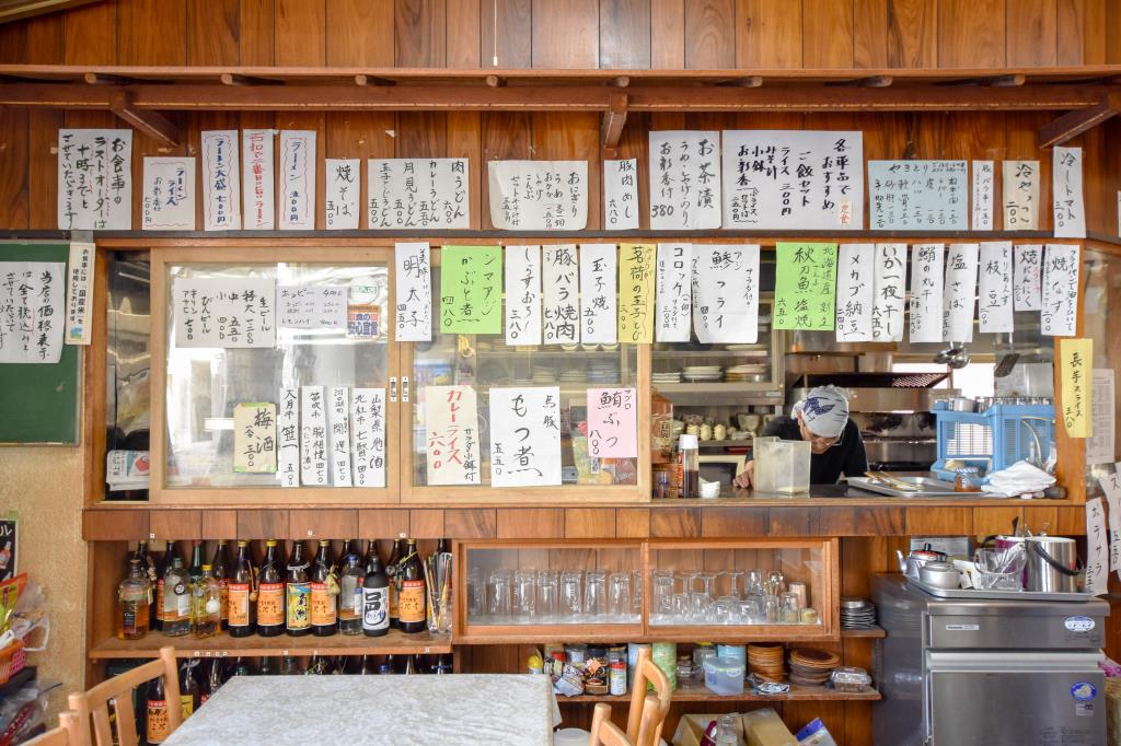 居酒屋としてのメニューが充実している食事処の名物は「石和で二番目に旨いラーメン」。ネギ油を使用した昔ながらのあっさり醤油味は、スープまで飲み干したくなる美味しさ。是非味わって。