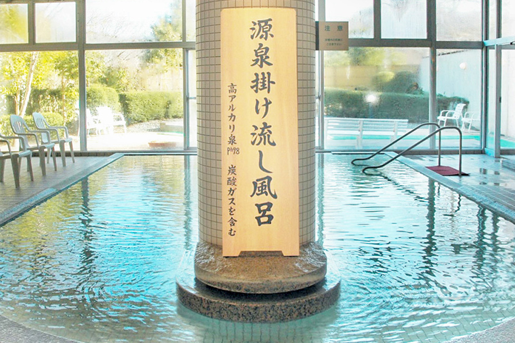飲泉も可能な36℃というぬるめの単純アルカリ温泉で、ゆっくりお湯に浸かることができ日頃の疲れも癒される。