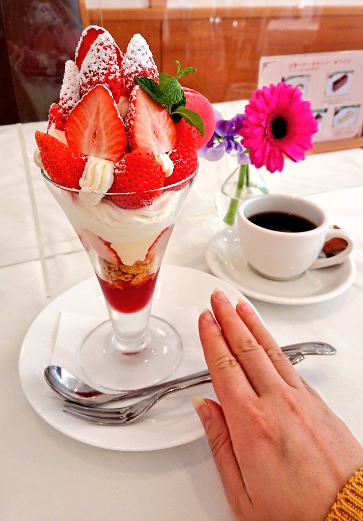 レストラン、アートアーカイブのいちごパフェを頂きました! ハイジの村の自社農園のいちごがアイスや生クリームよりも甘くて、かなり美味しかったです。今まで食べたいちごパフェの中でナンバーワンかもしれない!
