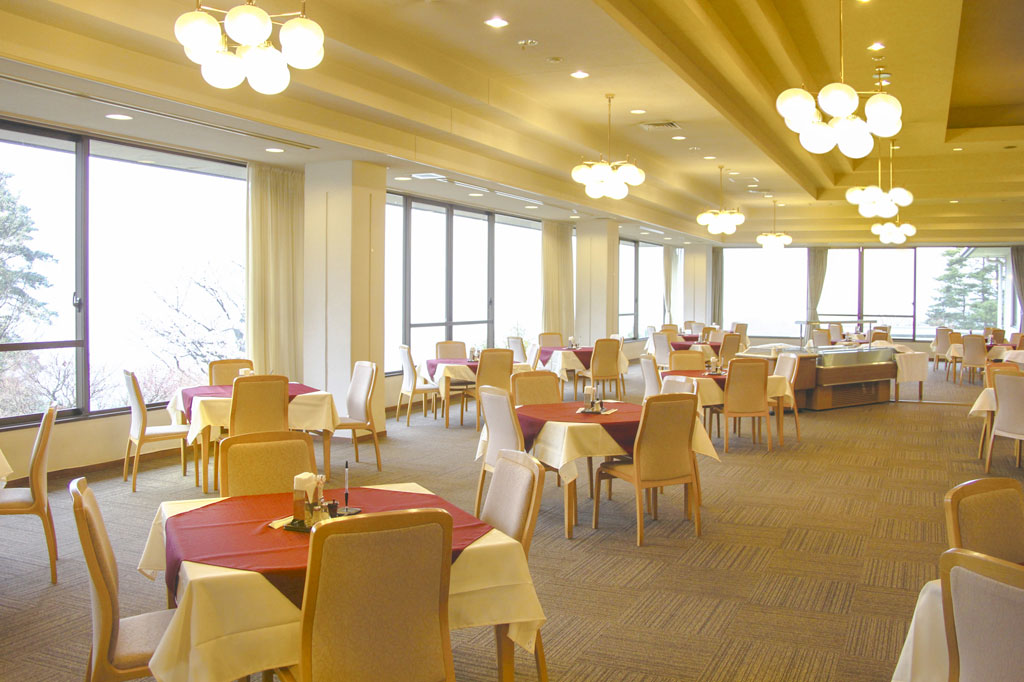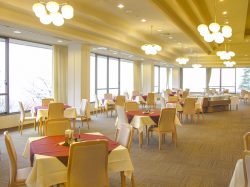 開放感溢れるレストランでは四季折々の料理やシャトレーゼのデザートバーを楽しめる。