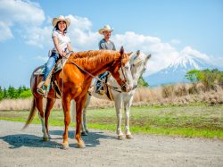鳴沢村にあるパディーフィールドは、富士山をバックにした絶好のロケーションで乗馬体験が出来るウエスタン乗馬クラブ。
