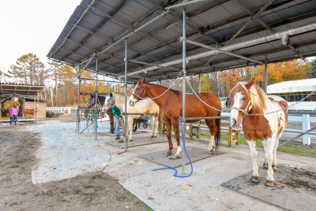樹海入口にあり、毛並みの綺麗なお馬さん達が気持ちよさそうに歩いているのが見れます。クロベエという小さい種?の可愛いお馬さ...