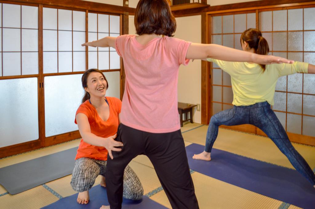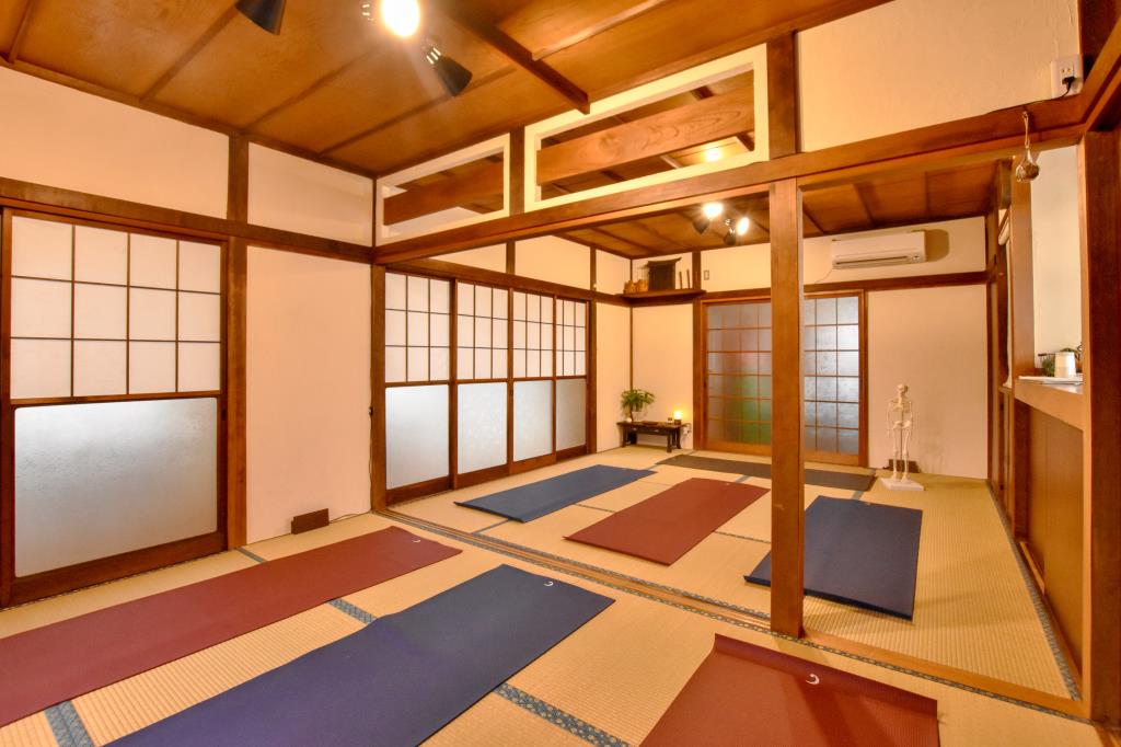 都留市にある古民家を改装したアットホームな空間でレッスンを行う、ヨガ・ピラティススタジオ。