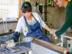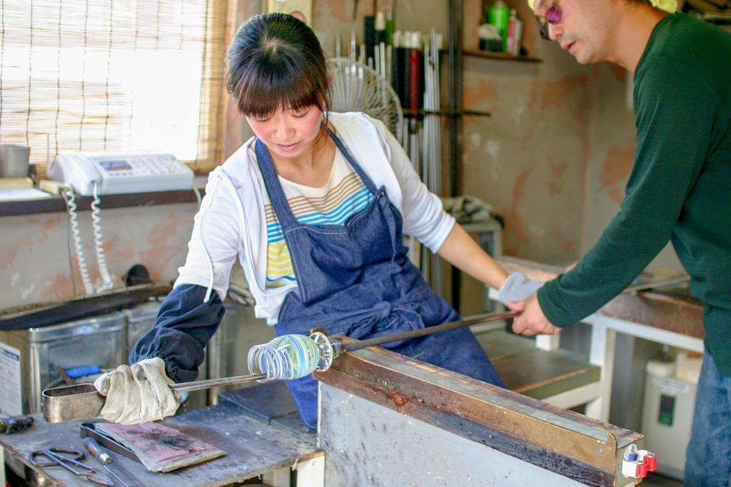 本格的な吹きガラスも職人がしっかりサポートしてくれるので気軽に楽しく体験できる。