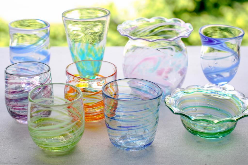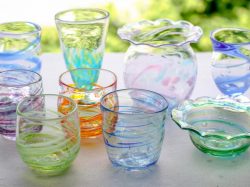 | メニュー | ●吹きガラス体験 (グラス・器・花瓶・風鈴など) ・透明ガラス…2,800円~ ・色付ガラス…3,200円~ ・オプション(取っ手等)…500円 ●ペーパーウェイトアクセサリー体験…1,200円 ※配送料別途 ※全て税込み |