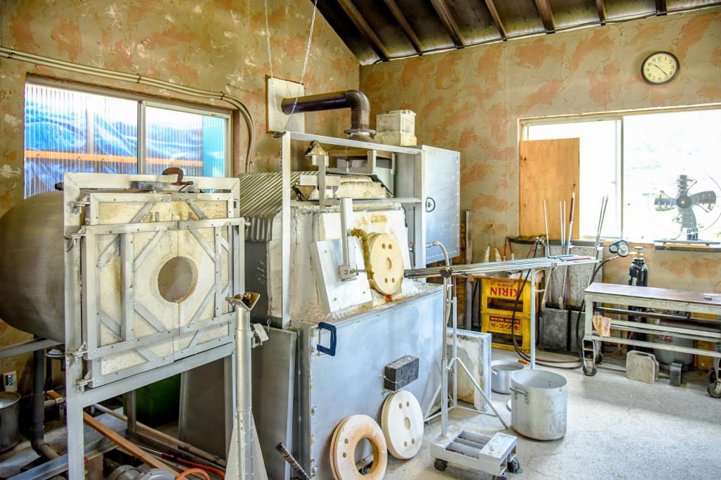 三ツ峠駅から徒歩15分。西桂町の自然豊かな山の麓にある「あしたば硝子工房」は、小さなギャラリーを併設した吹きガラス体験工房。