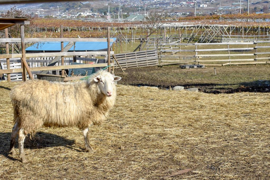 県内では珍しい羊放牧での葡萄栽培の様子も見学できる。