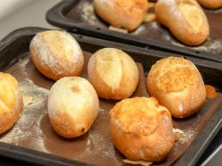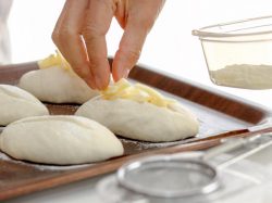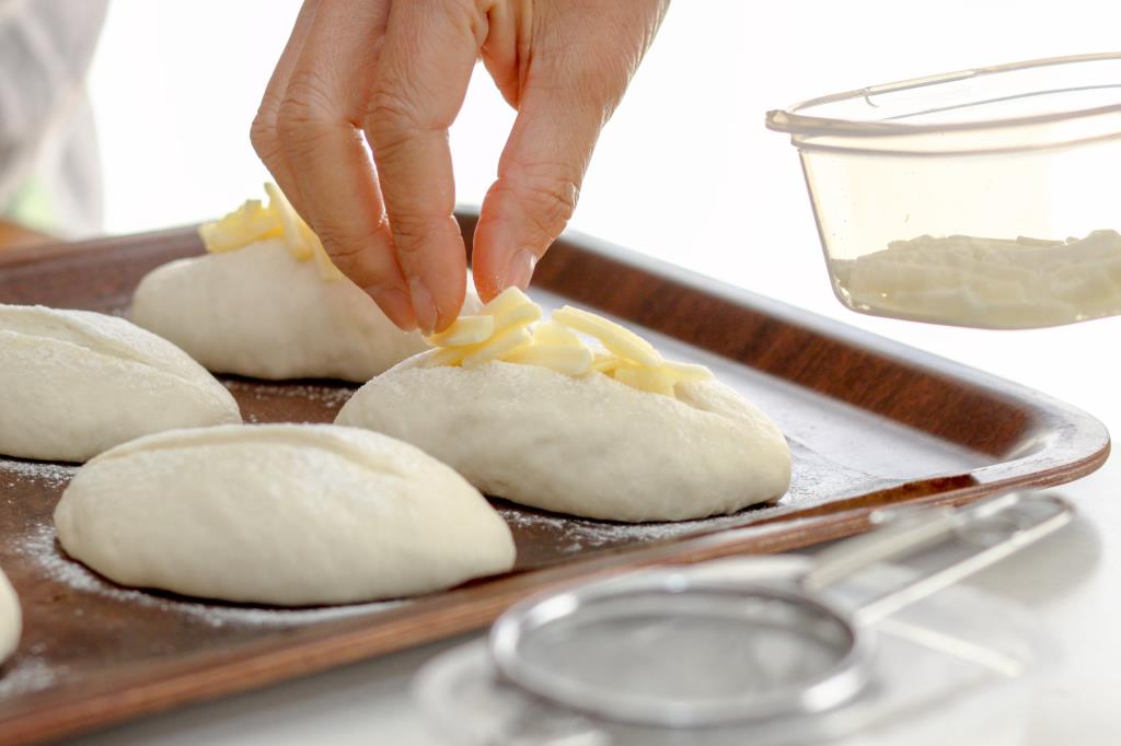 一回完結型クラスは事前に用意した生地でパンを2品作り、レッスン後にパンと簡単なランチをいただける。