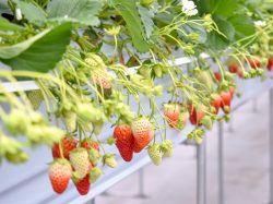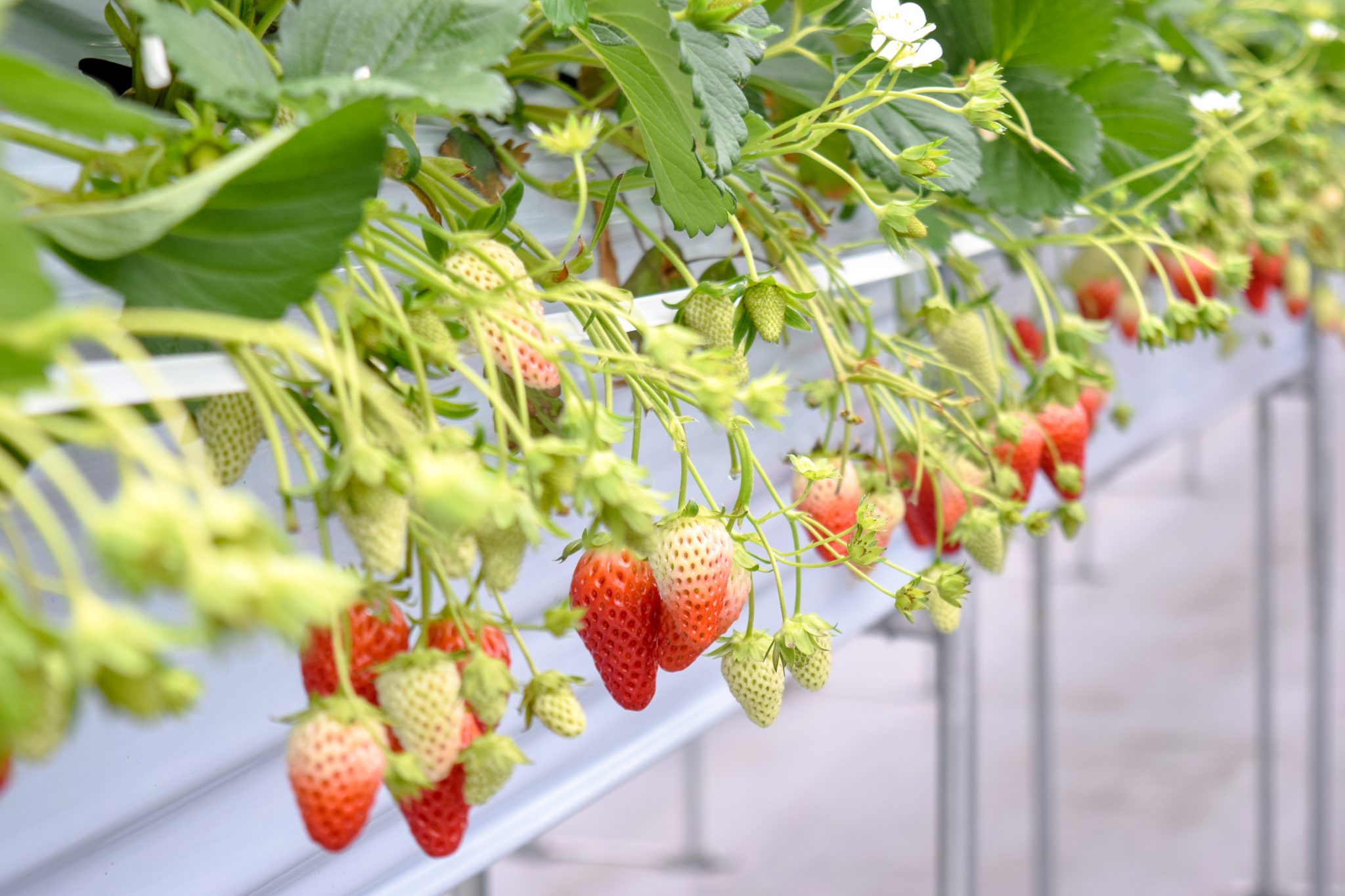 新海ファームベビーカー・車椅子でもラクラク♪ご家族で楽しめるいちご狩り農園。通路が広く、高設養液栽培のいちご棚で... -
