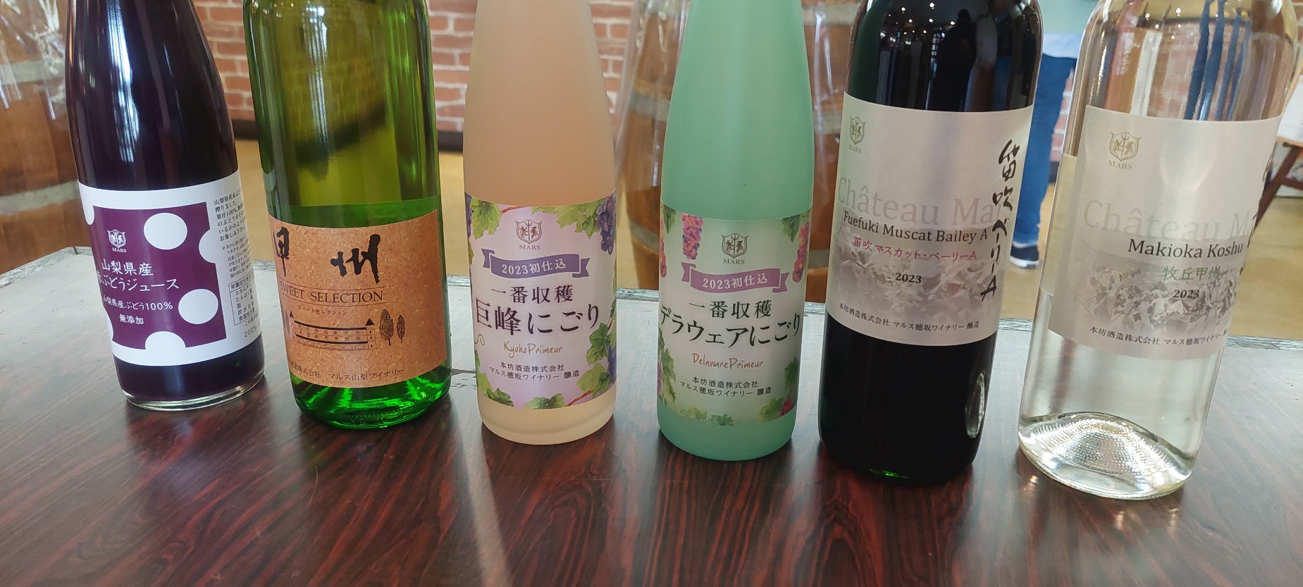 山梨ヌーボー解禁で、ワイナリーでも牧丘甲州、ベリーA、デラウェア、巨峰の2023ヴィンテージとスイートセレクション、ジュースの試飲がありました。