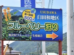 ブルーベリー摘み取り体験 砂細地区こいのぼりののぼり旗が目印♪ブルーベリーの栽培に適した1,000m近い標高で育ったブルーベリーは甘み... -