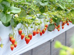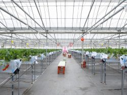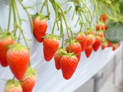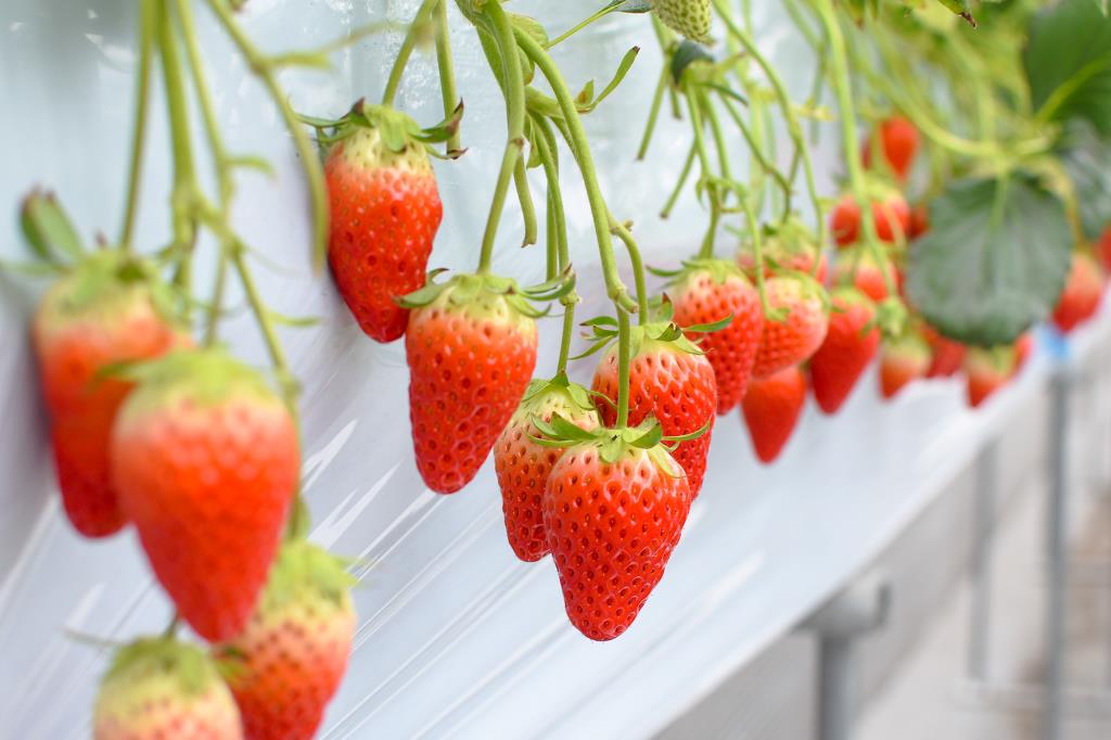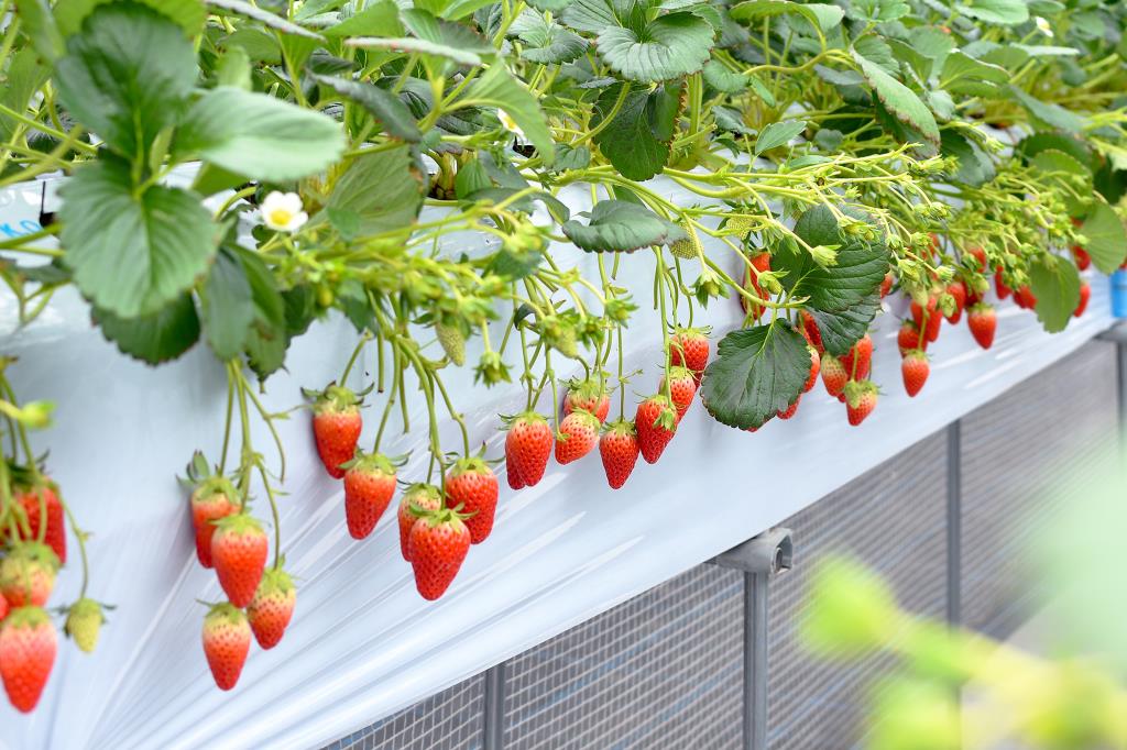 地上100㎝にいちご棚があるので立ったままいちご狩りができる。
