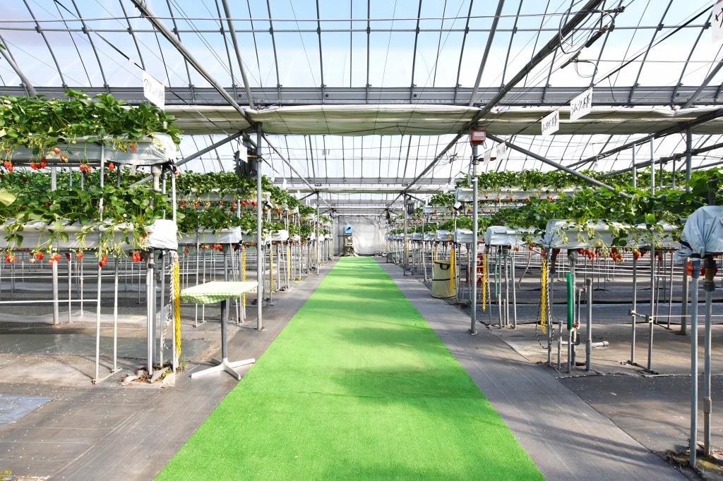 車いす、ベビーカー対応のバリアフリー型いちご狩り農園。