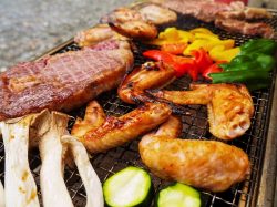 宿泊の場合には、コテージやトレーラーハウスのバーベキューテラスでバーベキューを楽しむことができる。