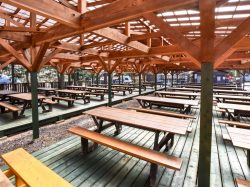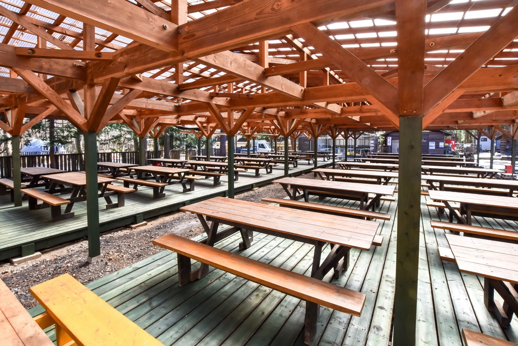 バーベキューやキャンプを楽しむことができ、日帰り利用の場合、600名まで収容のバーベキュー会場で食事を楽しめる。