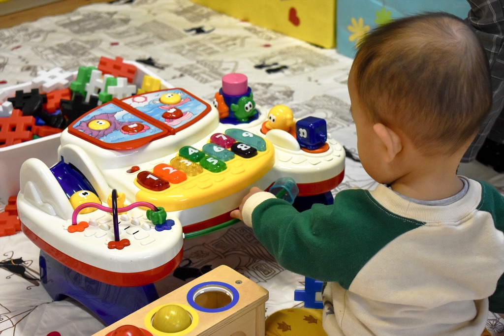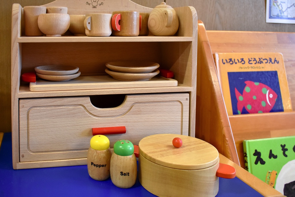 利用する子どもの多くが3歳以下ということもあり、知育おもちゃやおままごと用キッチンセットなど、赤ちゃんでも遊べるおもちゃもいっぱい。